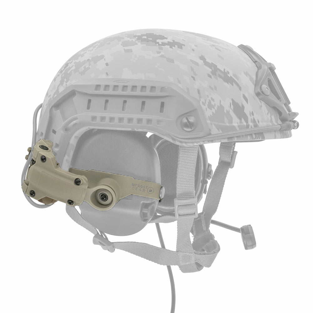 The Bifrost Gear COM-RAC for Sordin allows operators to easily convert their MSA Sordin headsets to install on the rear rail portion of most popular tactical helmets